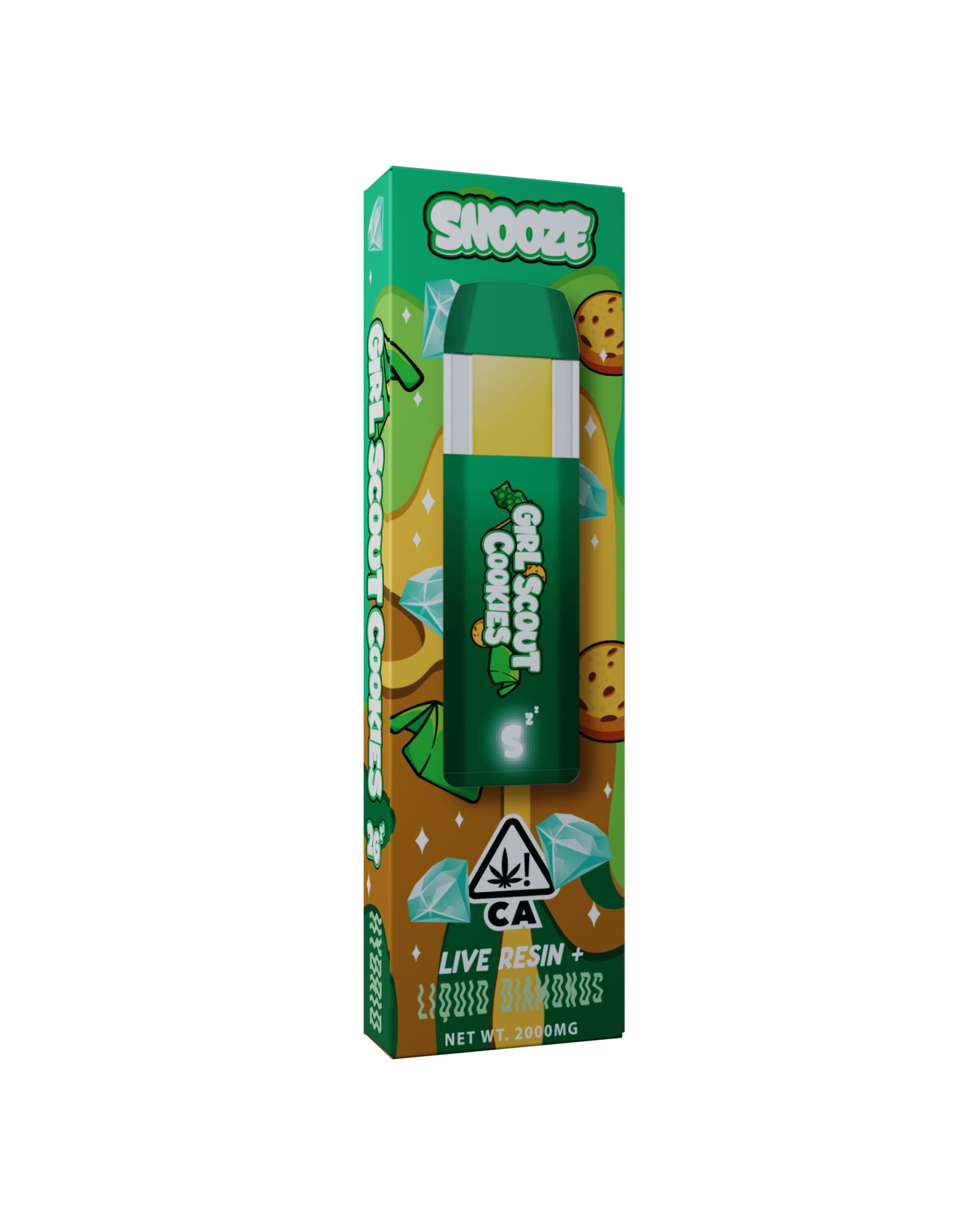 Snooze Girl Scout Cookies is a top-tier hybrid vape featuring 2 grams of premium live resin infused with liquid diamonds for a potent, flavorful, and smooth experience. Based on the legendary GSC (Girl Scout Cookies) strain, this disposable delivers a perfect balance of uplifting euphoria and calming body effects—ideal for any time of day. Powered by the rich cannabinoid and terpene profile Snooze carts of GSC, this vape blends dessert-like sweetness with powerful hybrid effects that last.